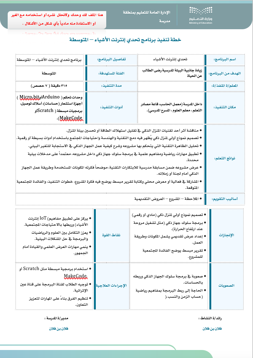هذا الملف رقمي ( WORD ) صُمم خصيصًا للمعلم/ـة المسند له برامج النشاط الطلابي في مدارس التعليم، مطابق للأدلة المعتمدة من المركز الوطني للمناهج ، وبتصميم احترافي متوافق مع الهوية البصرية للوزارة.