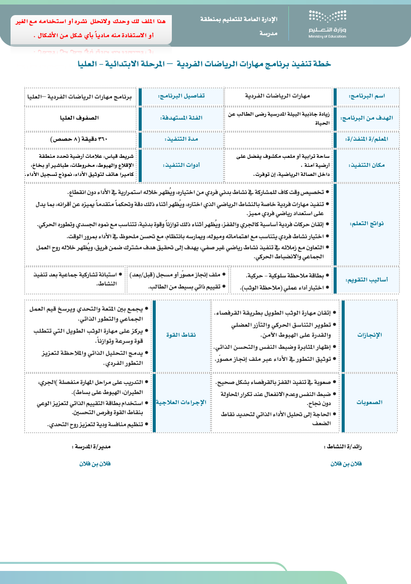 هذا الملف رقمي ( WORD ) صُمم خصيصًا للمعلم/ـة المسند له برامج النشاط الطلابي في مدارس التعليم، مطابق للأدلة المعتمدة من المركز الوطني للمناهج ، وبتصميم احترافي متوافق مع الهوية البصرية للوزارة.