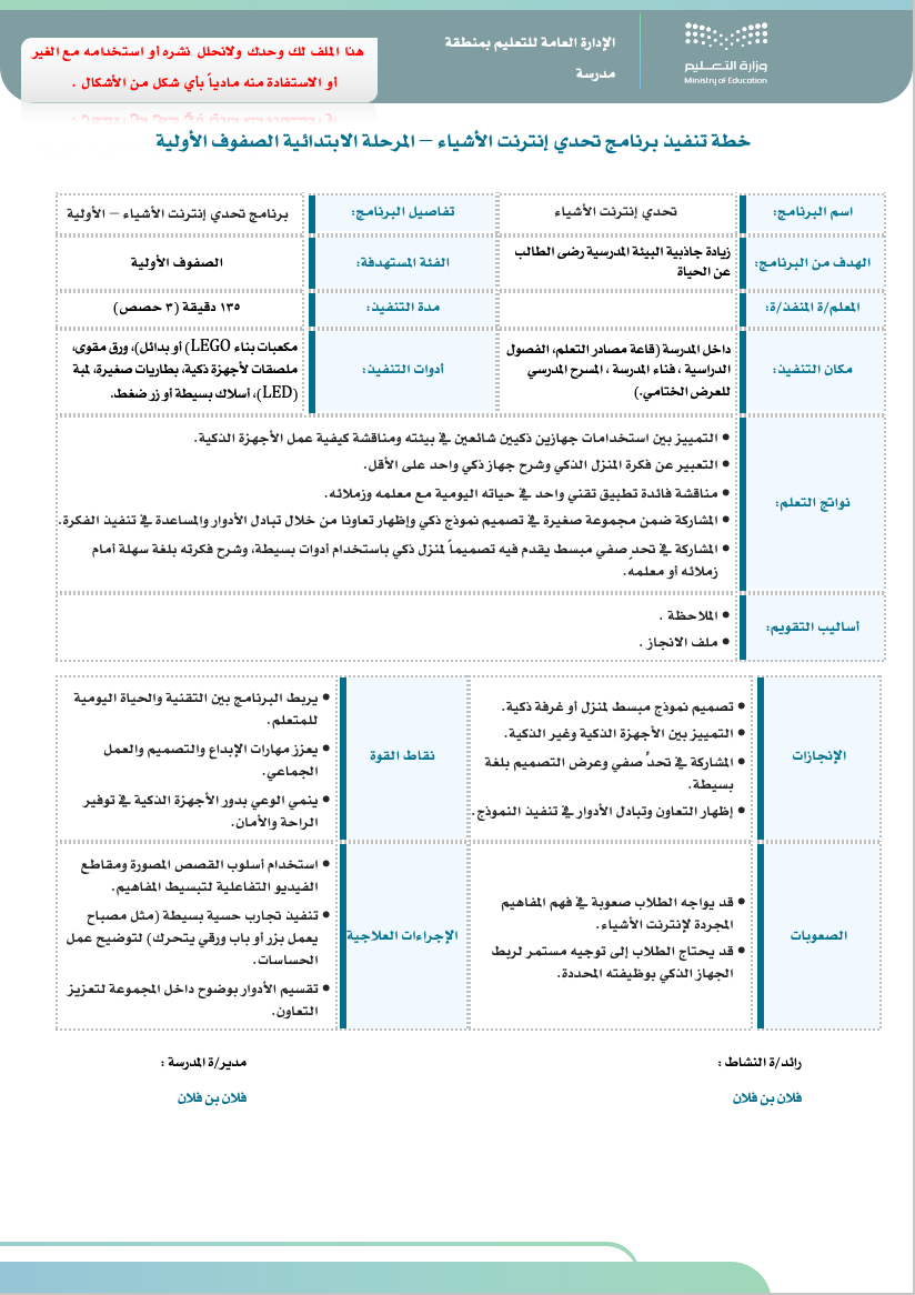 هذا الملف رقمي ( WORD ) صُمم خصيصًا للمعلم/ـة المسند له برامج النشاط الطلابي في مدارس التعليم، مطابق للأدلة المعتمدة من المركز الوطني للمناهج ، وبتصميم احترافي متوافق مع الهوية البصرية للوزارة.